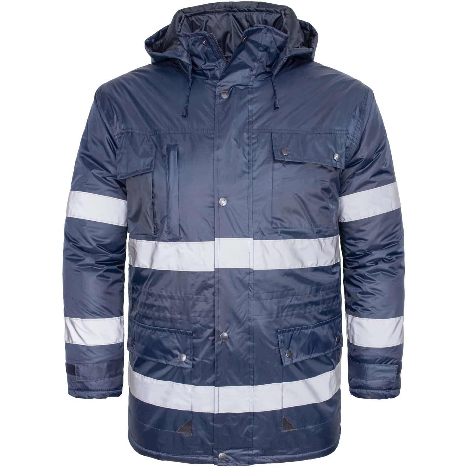 Reflexná zimná bunda bomber ROAD YELLOW podlieha širokej škále noriem, preto je vhodná pre pracovníkov na cestách či pri iných povolaniach, kde je nutnosť človeka vidieť. Svietivá fluorescenčná farba materiálu vám dodá viditeľnosť cez deň a dostatok reflexných prvkov cez noc. Vďaka 100%-nému polyesteru je bunda nepremokavá (vodeodolnosť triedy 3) a vetruvzdorná. Taktiež má vlastnosť paropriepustnosti triedy 1. Golier má obohatený o flísovú podšívku, ktorá vám udrží krk v teple. V nej sa nachádza aj kapucňa, ktorú v naliehavých prípadoch jednoducho vyberiete a použijete.