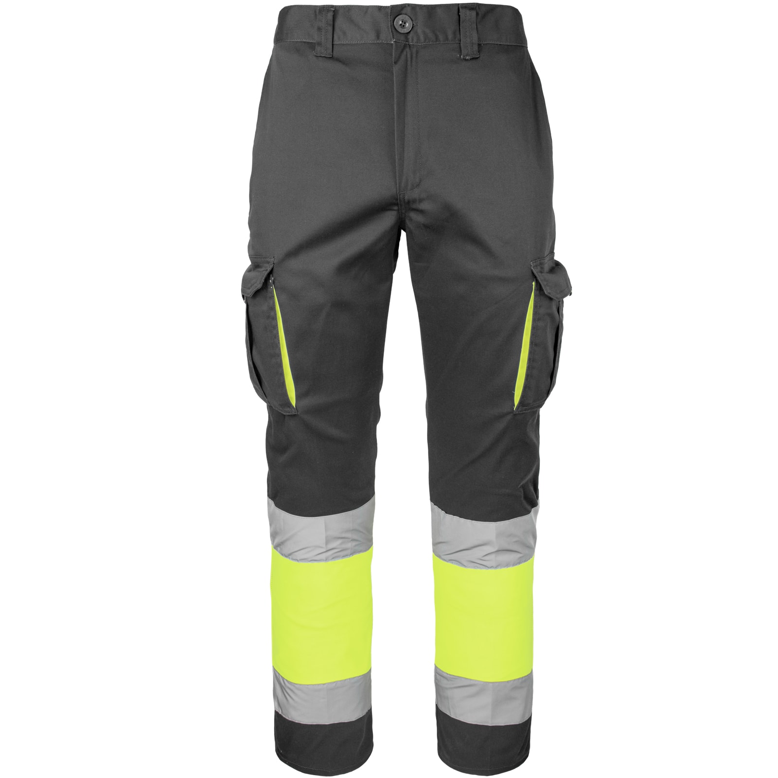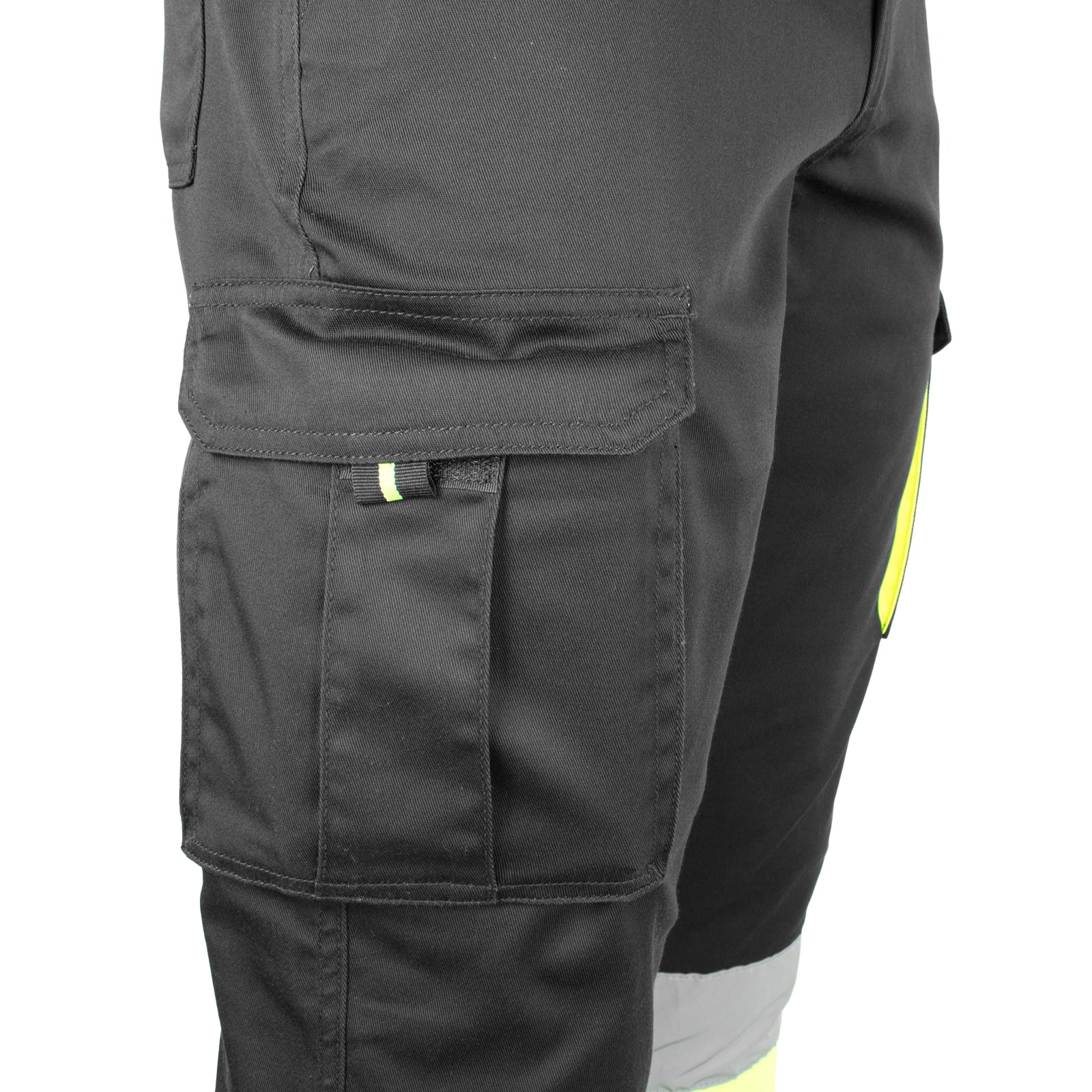 – V spodnej časti nohavíc fluorescenčný žltý materiál